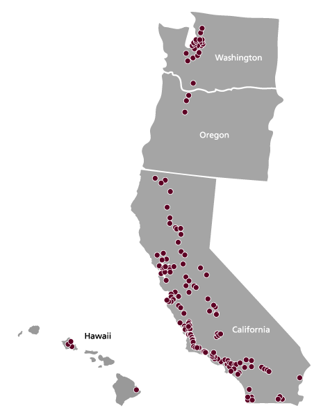 Today with 166 branches spanning from San Diego to Seattle, we serve the West Coast. We are passionate about providing for our local clients' banking and lending needs and giving back to our communities.